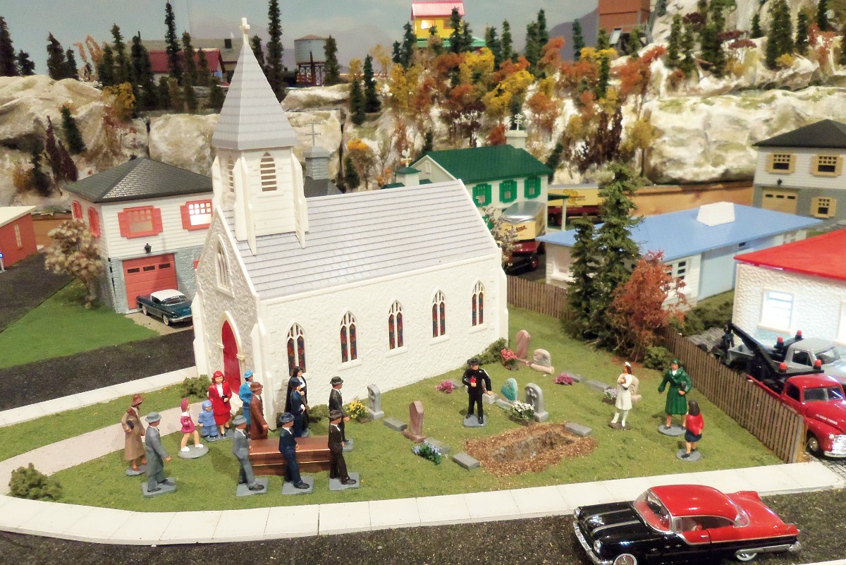 Overview from the NW - Barb (barb) Viewed: 1030 times.Overview from roundhouse - Barb (barb) Viewed: 1007 times.Overview from NE - Barb (barb) Viewed: 974 times.Logging operation on level 2 - Barb (barb) Viewed: 943 times.Roundhouse track balasted as well as all other track - Barb (barb) Viewed: 891 times.Refinery fenced and with groundcover - Barb (barb) Viewed: 943 times.Work never ends at the refinery - Barb (barb) Viewed: 963 times.Cardstock furniture shop from clever models - Barb (barb) Viewed: 979 times.Catching a large mouth bass for dinner. - Barb (barb) Viewed: 924 timesA funeral at the local church. Note the sidewalks - Barb (barb) Viewed: 782 times. Calif FunBarbs AAA Layout 2011