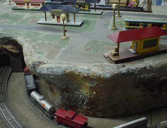 Highballin' passenger pases as a hard working freight climbs the grade Viewed: 1801 times.Water Tank Viewed: 1770 times.Mountain made the old way with 3/4 marine plywood, screening and plaster Viewed: 1839 times.Nighttime yardwork! Viewed: 1816 times. Move-InTalking Station Modification